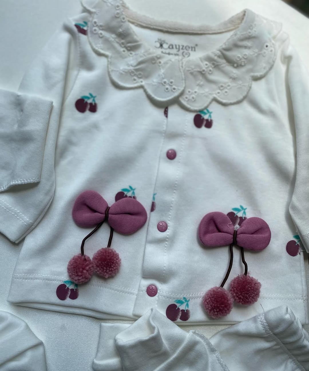 ست پنج تیکه ی ترک شامل شلوار ، کت ، دستکش ، کلاه ، پیشبند جنس نخ پنبه مناسب صفر تا سه ماه ت از طریق #سیسمونی_خاص
